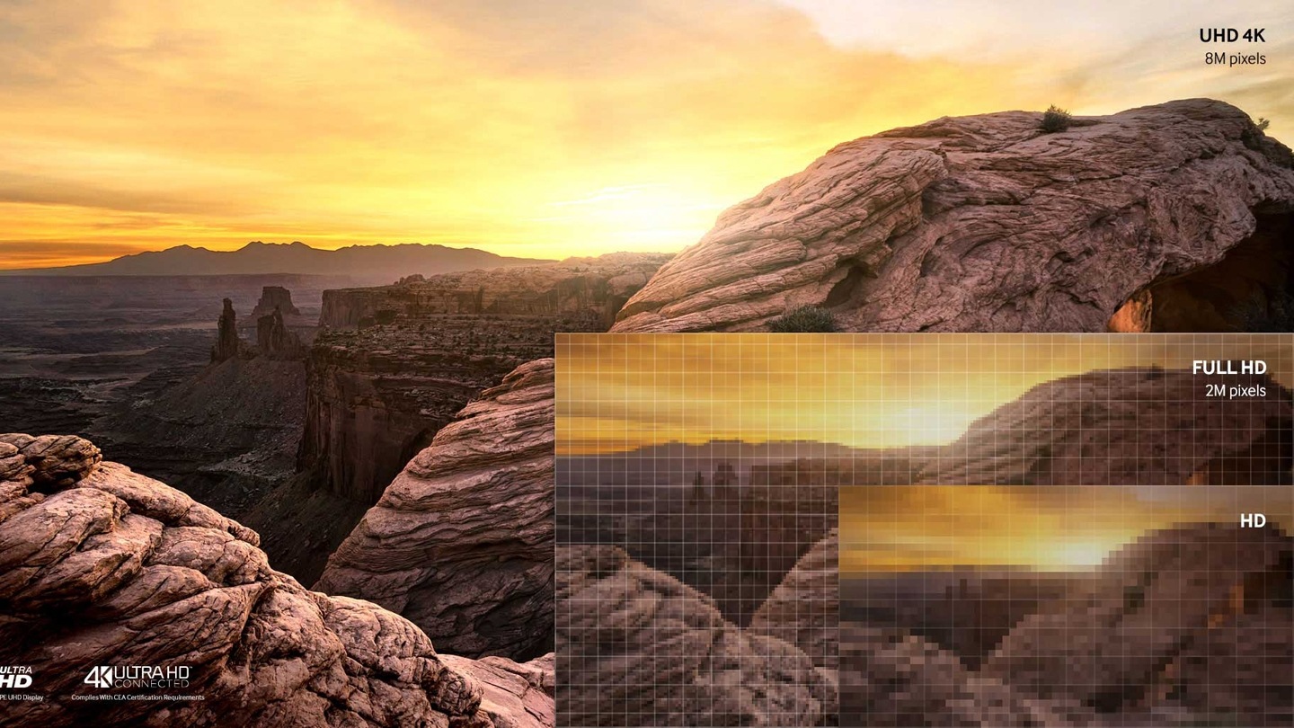 Samsung funkcija UHD Picture Engine pagerina net žemos skiriamosios gebos vaizdą beveik iki UHD. Ji naudoja inovatyvų 4 etapų procesą perkoduoti Jūsų mėgstamą turinį į tikroviškesnį.