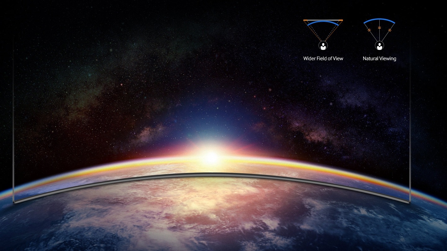 Švelnus Samsung lenktojo televizoriaus ekrano išlinkis padeda nieko nepraleisti, sukuria platesnį žiūrėjimo lauką ir užtikrina vienodą vaizdą žiūrint bet kokiu atstumu.