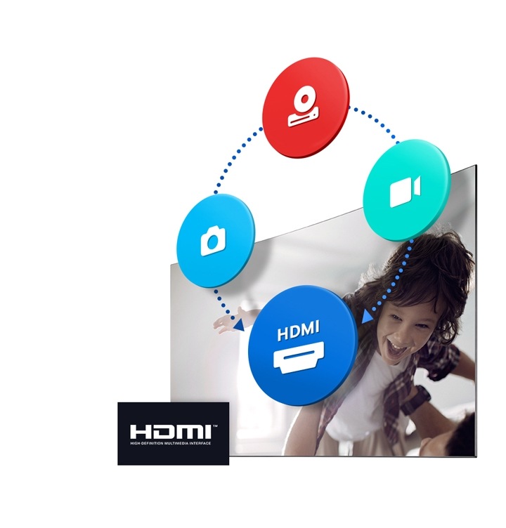 Samsung televizorius palaiko HDMI įvestį, todėl galite susikurti daugialypės terpės centrą savo svetainėje. Prijunkite HDMI tiesiai prie savo televizoriaus ir žiūrėkite turinį iš įvairių prietaisų.